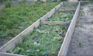 Цей шар біопалива злегка ущільнюють, засипають знятої грунтом, мульчують, формуючи шар в 10-15 см. У такому вигляді грядка йде в зиму.