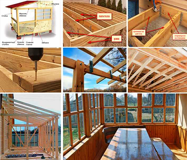 Мансард часто використовують готовий, тобто зібраний на виробництві, з вікнами, обшивкою і дахом. Від веранди тераса відрізняється збірної конструкцією: веранда НЕ утеплюється і робиться тільки фасад. Іноді для недопущення щілин в стінах і захисту від вітру використовують вагонку або дошку, які і створюють чудовий сільський дизайн веранди.