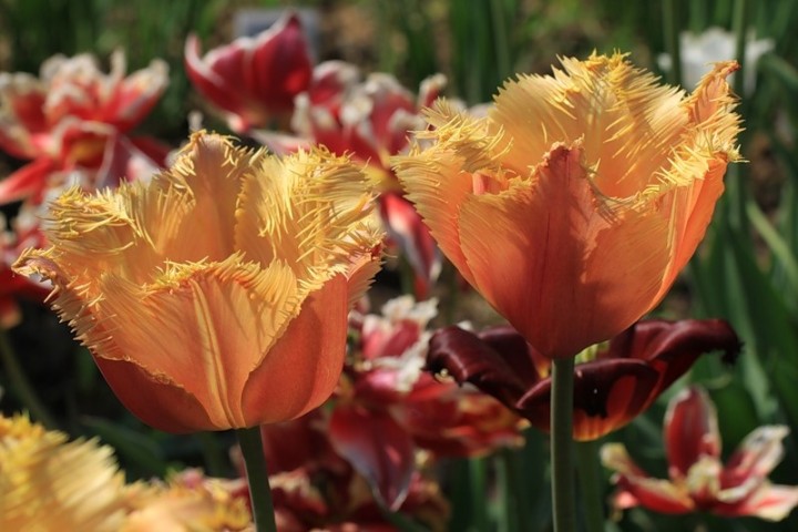 Група торочкуватих тюльпанів. Були виведені з різних видів, тому відрізняються і термінами цвітіння, і махровістю, і забарвленням, і формами. Об'єднує їх одне: сильно порізаний, як бахрома, край пелюстки. Сорти: Маскотт, Ламбада, Каммінс, Лінжері, Голд Дасть.