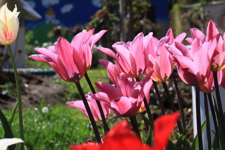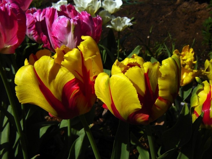 Головне, щоб місце для тюльпанів було захищене від вітру. Так як квіти розпускаються до розкриття бруньок на деревах, то тінь від останніх значення не має. Обов'язкова умова – відвести тюльпанів місце, де мінімум три роки не росли інші тюльпани.