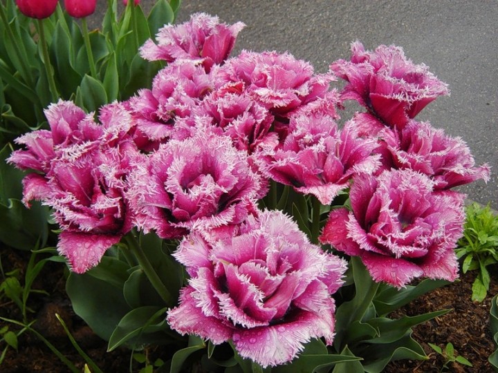Група махрових пізніх тюльпанів. Відрізняється махровими квітками, що розпускаються в кінці травня. Сорти: Маунт Текома (кремово-білий відтінок), Ніцца (на жовтому тлі червоні перисті плями), Симфонія (фіолетово-чорний), Міранда (червоний).