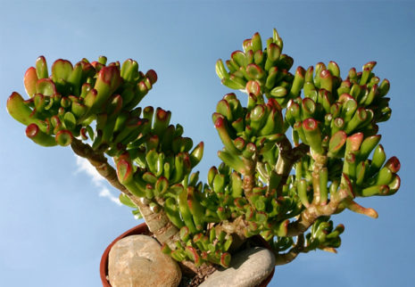 Те саме кімнатна рослина, форма якого нагадує дерево. Стовбур в нижній частині з віком покривається тонкою кіркою, через що схожість тільки збільшується. Стебло зеленувато-коричневий, на ньому є характерні смуги, які з'являються внаслідок опадання листя. Молоді і старі пагони прикрашені потовщеними, темно-зеленими округло-овальними листям. Рідко зворотна сторона пластини може покриватися розмитим червонуватим відтінком.