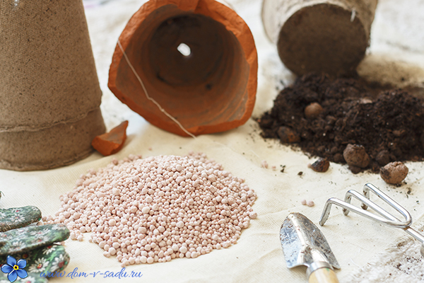 - Аміачна селітра – 10 гр; калій сірчанокислий -10гр, суперфосфат – 30гр