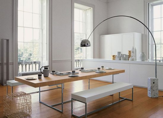 За задумом авторів, торшер Arco – альтернатива верхньої люстрі. Він може висвітлити, наприклад, обідній стіл.