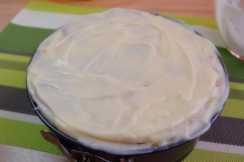 Після того, як покладіть всі шари печива, зверху змастіть весь торт кремом.