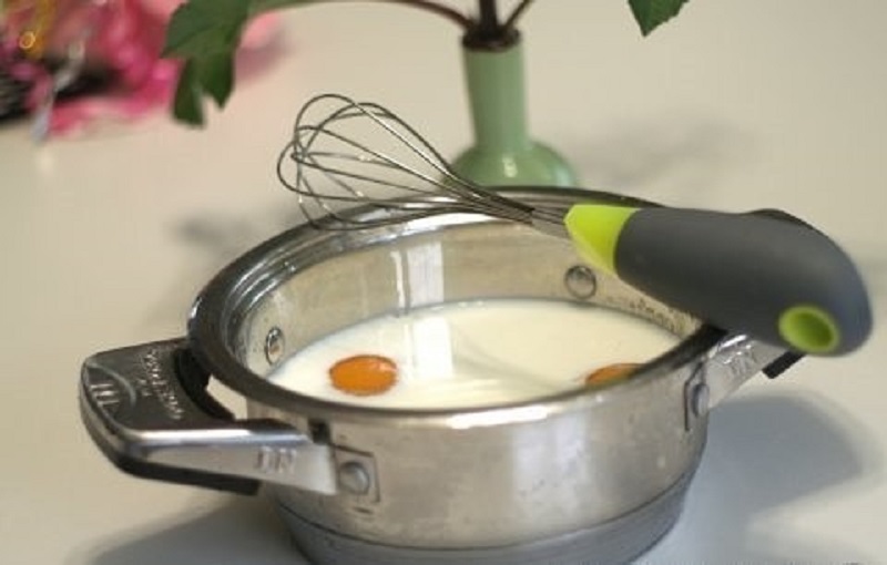 Збийте всі інгредієнти віночком або вилкою, додайте молоко і поставте на повільний вогонь.