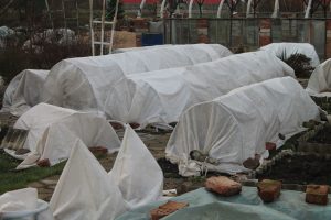 І, знову вкриваємо дуги плівкою. До настання морозної погоди слід зберегти отвори в укритті, за рахунок яких буде здійснюватися провітрювання. Шар снігу закриє ці отвори. Якщо ж настануть сильні безсніжні холоду – слід закрити отвори самостійно.