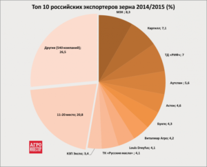 Якщо ще два роки тому вивезення з Росії здійснювали близько 560 компаній, то в 2016/17 сільськогосподарському році число експортерів перевищило 820. При цьому три чверті від загального вивезеного обсягу відправили за кордон всього півтора десятка компаній.