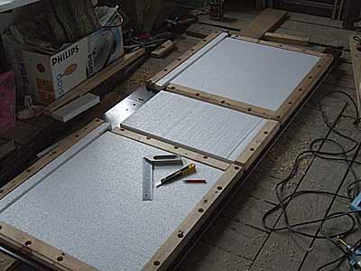 З внутрішньої сторони на двері встановлюється 2-3 бруса, поперек двері.Кріпити дерев'яний брус можна на наскрізні болти, залишаючи зовні лише згладжені круглі капелюшки. Далі, двері обшивають пінопластом, встановлюючи його враспор між брусами, і накриваємо листом OSB, який і прикручуємо саморезами до дерев'яного бруса. Загальна товщина двері в 4-6 см дасть можливість якісно зберігати тепло всередині будинку.