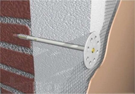 - Обробити стіни антисептиком і укласти матеріал утеплення, закріпивши його на каркас або відразу на стіни (наприклад, пінополістирол на «грибочки»);