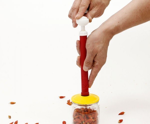 - Знімати кришку просто і зручно: піднявши клапан пальцем, потрібно впустити в ємність повітря, після чого вона сама зісковзне з горлечка. Заборонено використовувати для цього гострі або металеві пристосування: можна пошкодити кришки, в подальшому вони стануть непридатними для консервування.