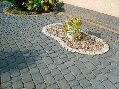 У центрі доріжки, викладеної плиткою, маленькі клумби виглядають оригінально, стаючи цікавою деталлю у вигляді саду і двору