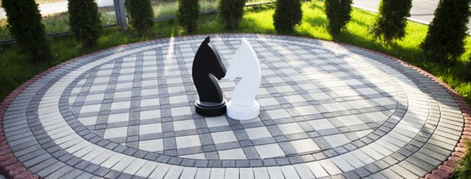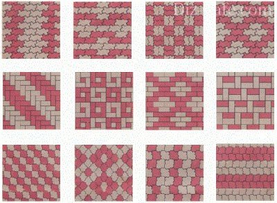 Схема укладання тротуарної плитки може бути як дуже простий, коли в певному порядку поєднуються два кольори, так і складною, за допомогою якої можна створювати справжні малюнки.