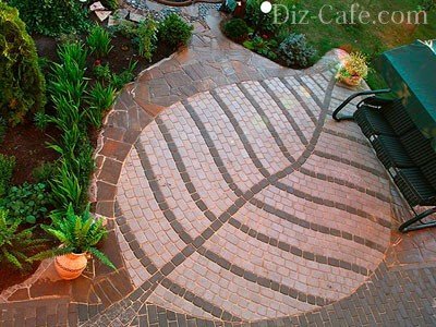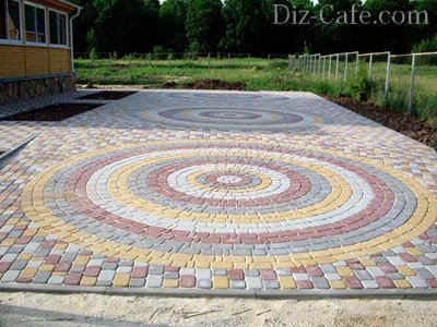 Використання плитки різних кольорів, з цікавою фактурною поверхнею, викладання за певною схемою здатне створити покриття дійсно цікаве і естетично привабливе, що радує око і оживляє вигляд двору і саду.