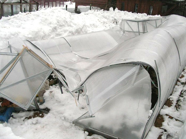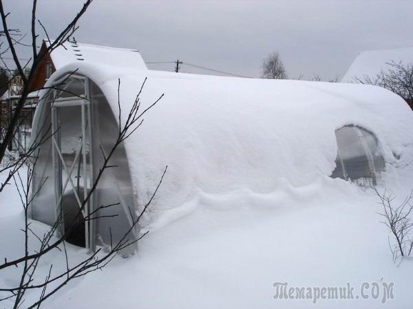 Особлива увага приділяється зовнішній стороні теплиці. Якщо не прибрати сніг звідти, він буде служити «холодильником», що для неї зовсім не доречно.