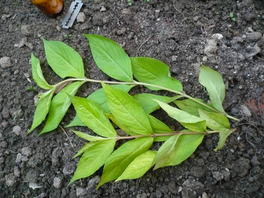 Вегетативне розмноження живцями – простий і абсолютно доступний спосіб отримання Красивоцветущие декоративного чагарнику. Живці завдовжки в 10-15 см нарізаються гострим ножем. Бажано повністю видалити з нарізаних черешків листя або залишити на верхівці не більше третини листа.