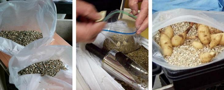 5. Зберігання овочів, фруктів і цибулин квітів. Спучений вермикуліт володіє адсорбуючі властивості, тому що зберігається в ньому посадковий матеріал захищений від перезволоження. Також при такому зберіганні істотно знижується ризик виникнення гнилей, а овочі і фрукти зберігають свої смакові якості.