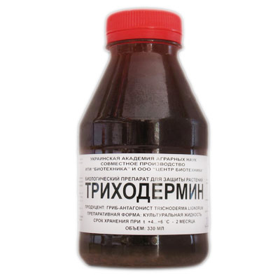 тріходермін містить гриб-сапрофіт, який здатний переробляти залишки шкідників і рослин. Кущі обприскують триходермин від всіх грибкових і вірусних захворювань. Витрата триходерміну – 50 г на відро води.