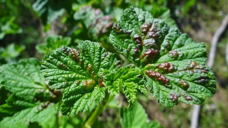 Бурі плями і нарости на листках – ознака хвороби смородини