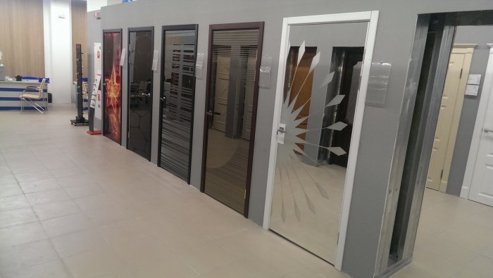 Невеликий за розміром елемент розташовують у верхній частині дверей. Скло великого розміру може займати як частину полотна, так і покривати його повністю.