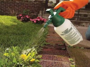 - Якщо потрібно обробити квіткову клумбу, то краще це зробити, завдавши гербіцид пензликом на листочки бур'янів, уникаючи обприскування.