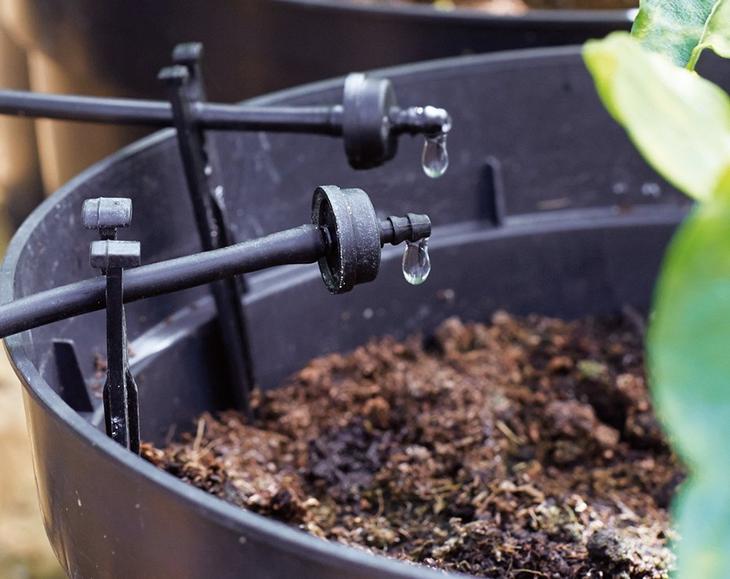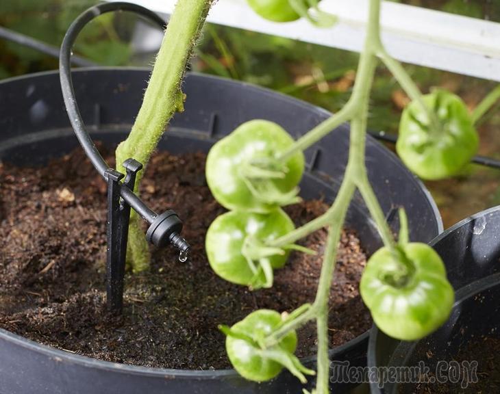 Система крапельного поливу для теплиці гарна ще й тим, що її з успіхом можна застосовувати для розсади, висадженої в контейнерах, ящиках і горщиках. Слід пам'ятати, що в такій схемі обов'язково повинен бути присутнім таймер, інакше витрата води буде занадто великий. Крім того, краплинні системи потрібно регулярно очищати від водоростей і забруднень.