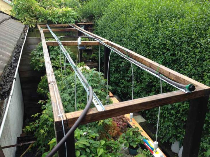Для догляду за вмістом теплиць, декоративними живими огорожами, чагарниками і квітковими клумбами, в тому числі складними по плануванню, застосовують цілі магістралі, що представляють собою сукупність крапельниць, розташованих на загальному шлангу на певній відстані один від одного. Автоматична система мікрокраплинної поливу для теплиць хороша тим, що воду з її допомогою можна підвести до кожної рослини окремо.Встановлюють їх безпосередньо біля коріння і кріплять в землі особливими пластиковими кілочками.