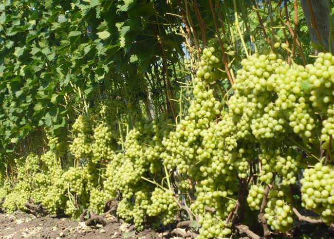 - з метою захисту від перевантаження виноградної лози і здрібніння сформованого врожаю рекомендується залишати на кожному пагоні не більше однієї великої грона;