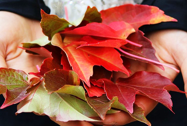 - красиві великі кленові листки,