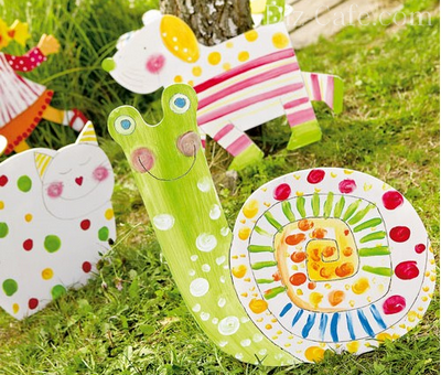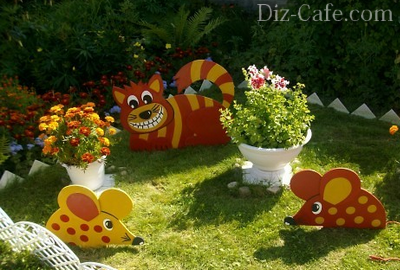 За таким же принципом можна зробити і тематичні фанерні конструкції, наприклад: загубився в квітнику мініатюрний казковий ліс з химерними деревами або симпатичну галявину біля ставка, заповнену кумедними фігурками звірів. Зроблені своїми руками фанерні конструкції, прикрасять вашу ділянку, зробивши його привабливим і унікальним.