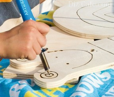 За наміченим контуру за допомогою лобзика вирізаємо фігуру. Її краї ретельно відшліфовуємо наждачним папером, надаючи їм гладкість