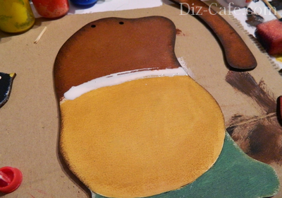 Оформляємо фігуру: на заготівлі простим олівцем прорисовуємо елементи персонажа і розфарбовуємо їх акриловими фарбами