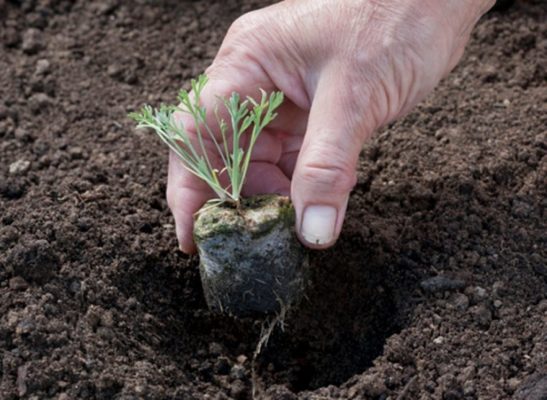 - Намагаючись не пошкодити земляний кому, посадити розсаду в лунки.