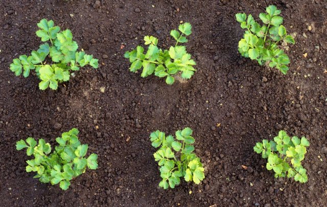 Коли розсада досягла віку 55-60 діб, час подумати про те, як садити кореневої селера в грунт. Як правило, в середній смузі це можна робити не раніше середини травня або навіть ближче до кінця місяця. Селера не боїться холодів, але на випадок нічних заморозків його потрібно прикривати спанбондом.