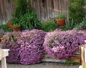 Розрослися кущики аспонаріі базіліколістной стеляться над землею, як рожеві повітряні килими. Її можна висаджувати на окремій клумбі, організувавши простір за допомогою великих каменів. Красиво виглядають такі клумби серед трав'яних газонів і на схилах.