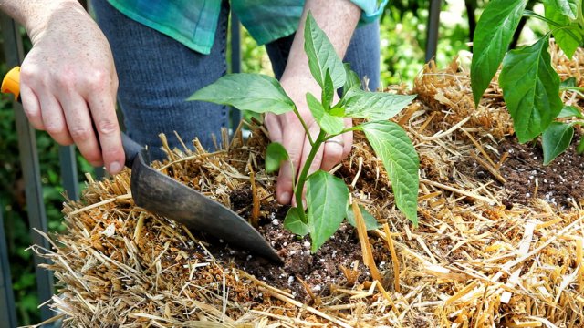 Перші 2-3 тижні коріння перцю будуть розвиватися в грунті, отримуючи від соломи лише тепло, а потім проростуть далі.Пам'ятайте, що в процесі розкладання солома може просідати або обсипатися, тому через 7-10 днів після висадки прикріпіть перець до шпалери.