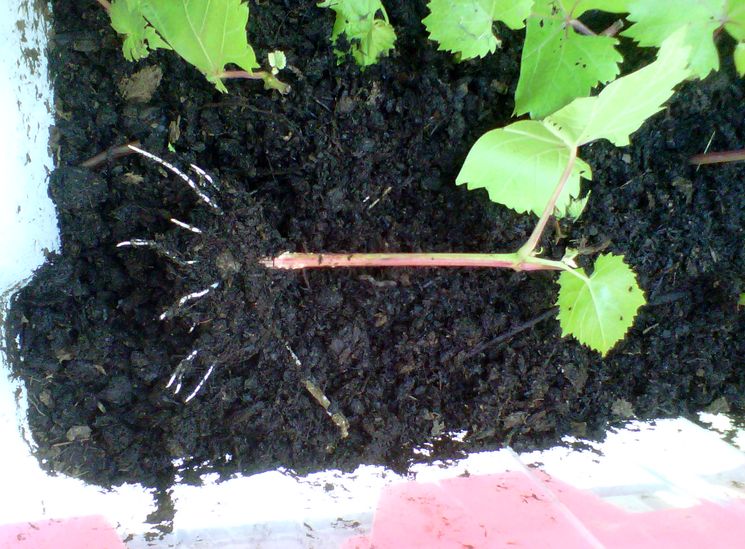 Виноградні саджанці при термінової в них необхідності можна отримати і шляхом вкорінення зелених верхівок однорічної лози і робиться це в такий спосіб: з кінця серпень і до початку вересня зрізається верхівка лоз з 6-8 листям з розрахунком, що в місці зрізу вона повинна бути від 4 до 6 міліметрів. У отриманого таким чином верхівкового живця видаляються два нижніх листа з черешками і укорінюють його в будь-яку ємність в обсязі квіткового горщика, заповнену наполовину сумішшю грунту і піску, а далі доверху чистим піском. Після поливу накрити чистою банкою, підклавши прутик для вентиляції.