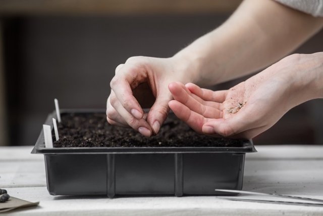 Після посіву засипте насіння землею і злегка притисніть долонею. Ємності накрийте плівкою, склом або прозорою пластиковою кришкою і поставте в тепле місце.