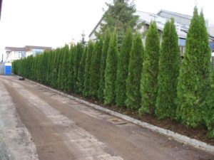 - Якщо туї висаджуються для створення огорож, то проміжок між ними повинен бути 0,5, 06 м.