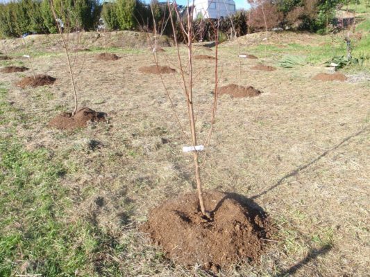 При посадці вишні сорту Шоколадниця дотримуються інтервал 2,5 м між стовбурами і 3,5 м між рядами