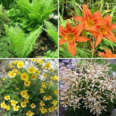 Серед болотних рослин декоративні форми мають папороть, лилейник, волжанка, гравілат