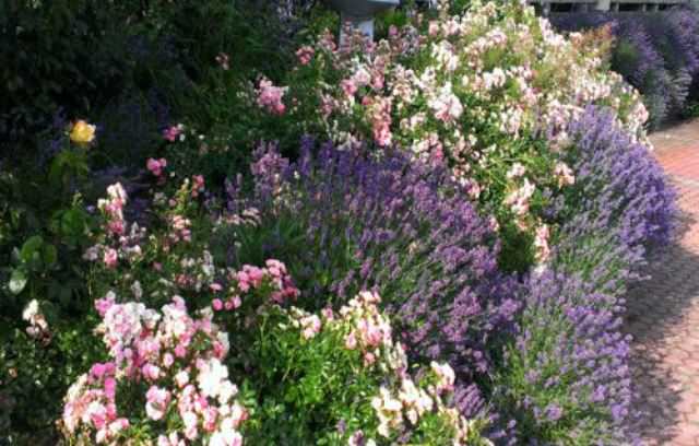 Класичний варіант для клумби – поєднання лаванди і троянди. Використовуючи даний прийом, Ви не тільки отримаєте дивно приємний аромат, але і захистіть троянду від шкідників, наприклад, від равликів.