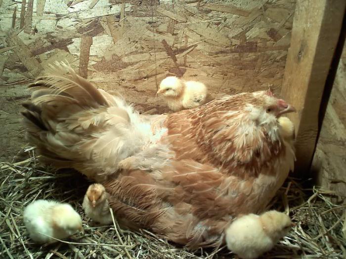 На дно коробки слід підстелити газету, встановити годівницю і поїлку. Зверху встановлюється лампа розжарювання для підтримки температури. У перший тиждень вона повинна складати 37,7 ° С, після чого її поступово знижують до 36,9 ° С.