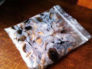 Після заморожування контейнер можна прибрати, а заморожену суміш помістити в пакет і відправити в морозилку для подальшого зберігання.