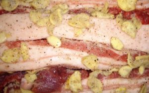 Сухий метод засолювання є найпростішим і швидким – в даному випадку сало натирається сіллю і спеціями з додаванням часнику і забирається в холодильник на строк від 3 до 5 днів.