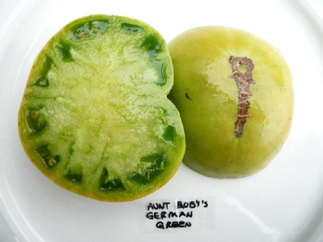 - Зелений німець тітоньки Рубі (AuntRuby`sGreenGerman) – високорослий середньостиглий сорт з великими і соковитими томатами "біфштексами", вагою не більше 600 м