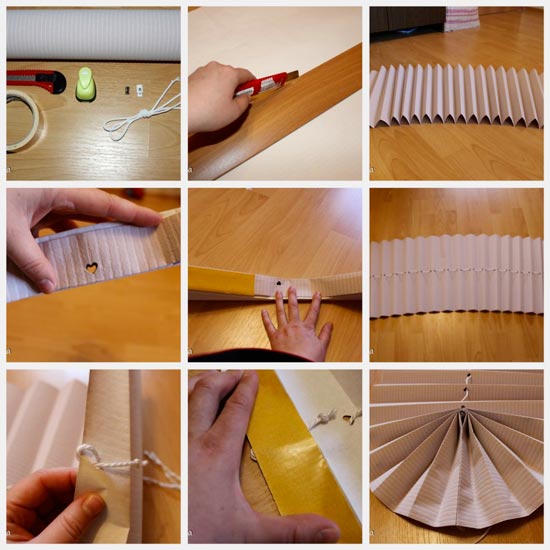 - Низ оформити у вигляді «хвоста павича». Скріпити п'ять нижніх складочок і скріпити їх скотчем. Шнур звернути на протилежну сторону.