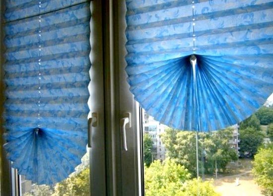 - Плісе. Тканинне полотно, яке складається у вигляді гармошки. Наводиться в дію завдяки спеціальним шнурах і мотузочки, на кінцях яких закріплені фіксатори.