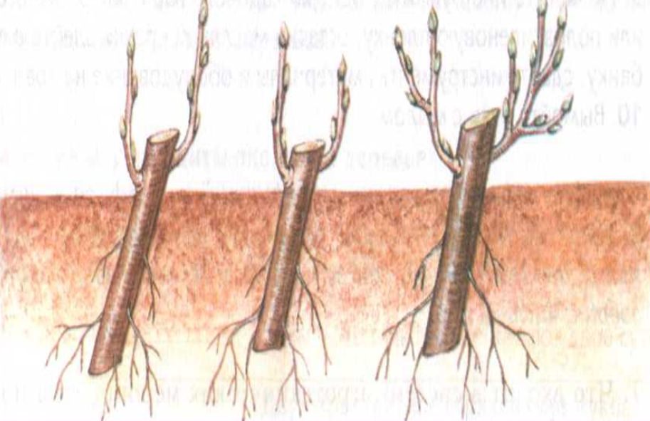 Висаджувати матеріал необхідно ранньою весною, попередньо виконавши невеликі поглиблення за допомогою тонкої палички. Живці потрібно розміщувати похило, заглиблюючи до рівня верхніх нирок. Щоб поліпшити контакт з грунтом, держак слід акуратно обжати пальцями.
