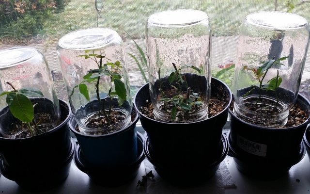 Живці після посадки полийте і притените. Щоб створити для них тепличні умови, зверху можна накрити їх обрізаної пластиковою пляшкою, скляною банкою або білим непрозорим пакетом. Такі міні-теплички поставте в саду під чагарниками.